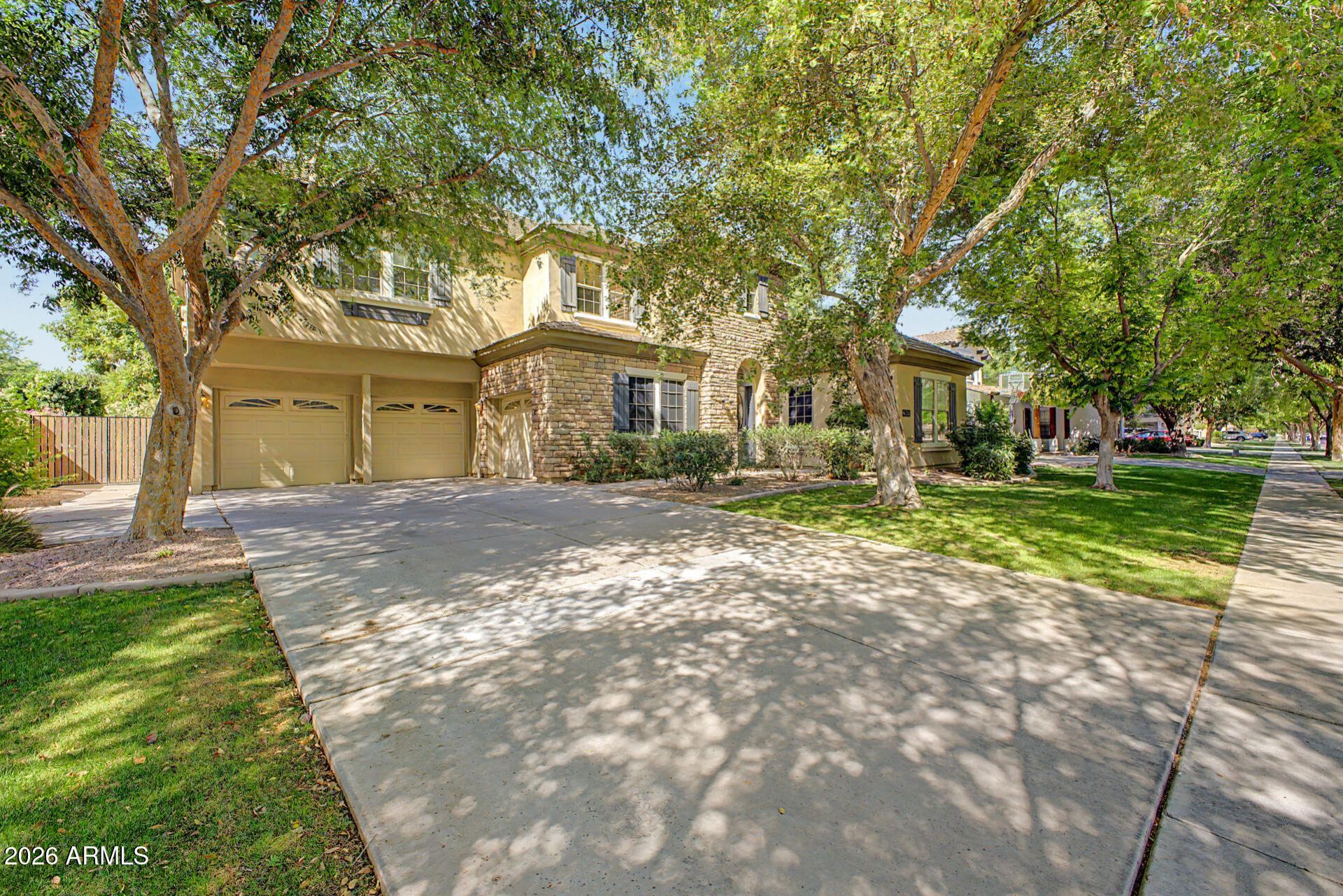 Gorgeous home in highly sought-after, tree-lined community of Morrison Ranch! Thoughtfully designed with upscale finishes, this desirable open floor plan offers 5 bedrooms (one downstairs), 3.5 baths and a huge loft! Highlights include natural wood flooring & designer lighting! The chefs kitchen features white cabinetry, quartz countertops, large walk-in pantry w/ adjacent butlers pantry. The family room opens to the kitchen and dining area with a cozy fireplace, ideal for entertaining! All secondary baths have been fully remodeled. The tranquil backyard features beautiful lush landscape, a box flower garden & a large covered patio perfect for enjoying these Az sunsets. Newer A/C units! Conveniently located between 60 & 202 freeway! Close to restaurants, shopping and more!